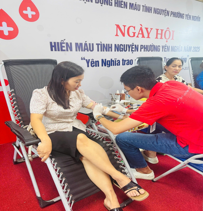 Thực hiện Kế hoạch số 74/KH-UBND ngày 25/9/2025 của UBND phường Yên Nghĩa về tổ chức vận động hiến máu tình nguyện năm 2025 trên địa bàn phường Yên Nghĩa; ngày 12/10/2025, các cán bộ- giáo viên- nhân viên Trường Tiểu học Yên Nghĩa đã tích cực hưởng ứng tuần lễ hiến máu nhân đạo tại UBND phường Yên Nghĩa. Với mong muốn một giọt máu cho đi là một cuộc đời ở lại cấp cứu, trong đợt này các cán bộ- giáo viên- nhân viên nhà trường đã hiến được 1550 ml máu, góp phần vào việc cứu chữa những người bệnh đang cần máu. Sau đây là một số hình ảnh: