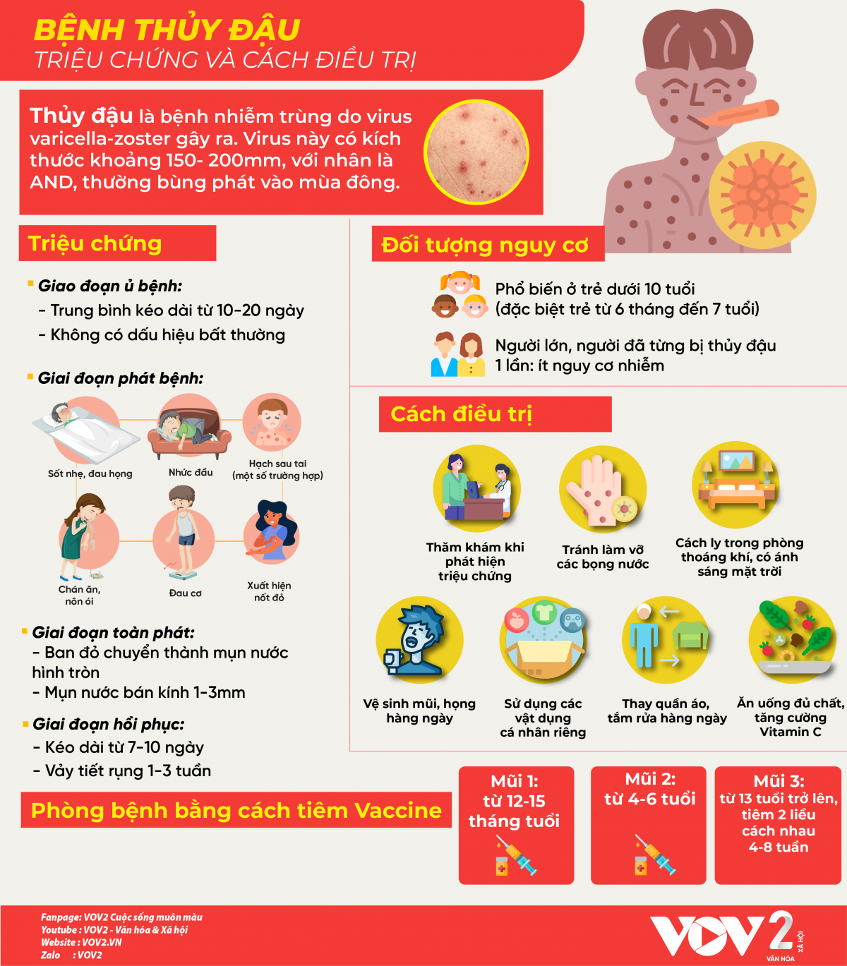 1. Thủy đậu là bệnh truyền nhiễm cấp tính do virus gây ra, dễ lây lan qua đường hô hấp hoặc tiếp xúc với dịch tiết từ nốt phỏng.