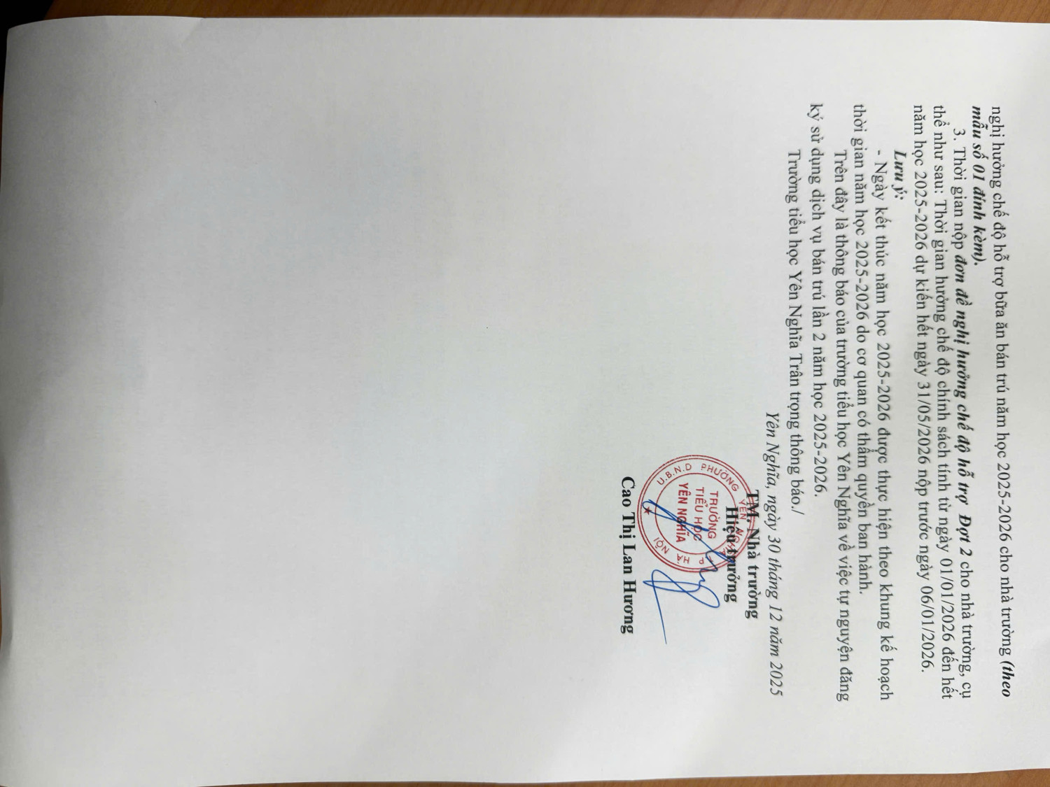 Thông báo thực hiện đăng ký hỗ trợ bữa ăn bán trú theo NQ18/2025/NQ-CP lần 2 NH 2025-2026